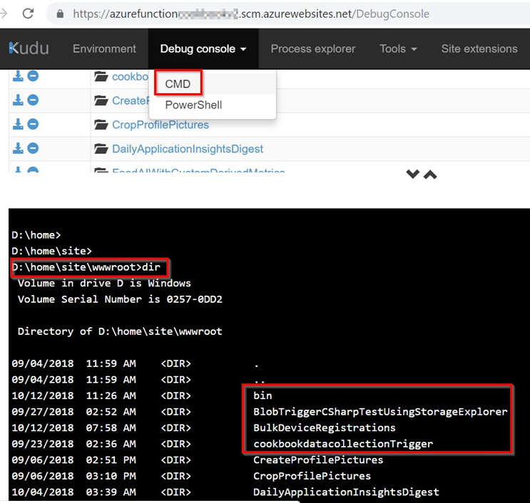 D:\home\site\wwwroot es la ubicación en la que el runtime busca los binarios y todos los archivos de configuración necesarios para ejecutar la aplicación.