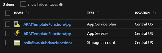 Antes de comenzar a crear las plantillas de ARM, debemos comprender los otros servicios de Azure de los que depende Azure Function. Los siguientes servicios se crean automáticamente cuando creas una aplicación de función: