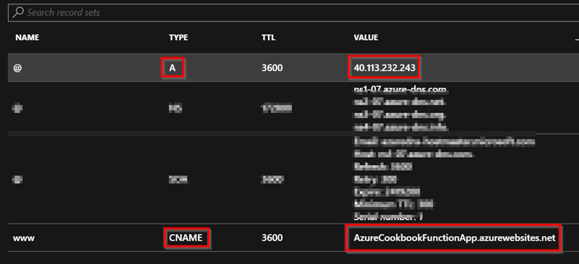 Si ya tienes un dominio personalizado y deseas integrarlo con la aplicación de función, debes crear los siguientes dos registros en el DNS: