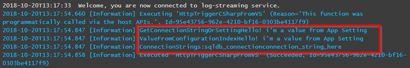 logger.LogInformation(«GetConnectionStringOrSetting» + ValueFromGetConnectionStringOrSetting);