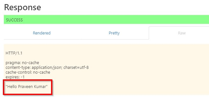 - He introducido Praveen Kumar como valor para el nombre, he hecho clic en el botón Enviar solicitud y he obtenido el resultado siguiente: