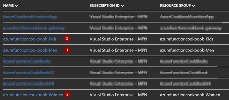 - https://azurefunctioncookbook-gateway.azurewebsites.net/Women