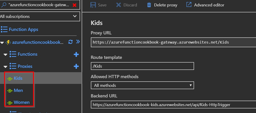 - https://azurefunctioncookbook-gateway.azurewebsites.net/Kids