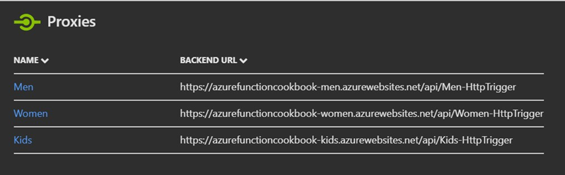 - https://azurefunctioncookbook-gateway.azurewebsites.net/Men
