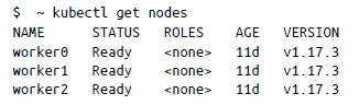 El primer paso para interactuar con el clúster de Kubernetes es aprender a obtener conocimientos sobre el clúster, la infraestructura y los componentes de Kubernetes con los que trabajarás. Para ver los nodos de trabajo que ejecutan las cargas de trabajo en tu clúster, ejecuta el siguiente comando kubectl: