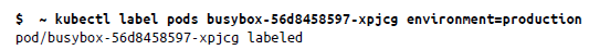 Las etiquetas, como hemos mencionado anteriormente, se utilizan para organizar los objetos. Por ejemplo, si quieres etiquetar el pod busybox con un valor llamado production, puedes hacerlo de la siguiente manera, donde environment es el nombre de la etiqueta: