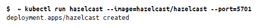 El comando kubectl run extrae una imagen pública de un repositorio de contenedor y crea un pod. Por ejemplo, puedes ejecutar una imagen de hazelcast de la siguiente manera y exponer también el puerto del contenedor: