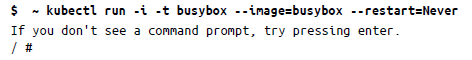 El comando kubectl run contiene conjuntos de características muy completos y permite controlar muchos comportamientos de los pods. Por ejemplo, si deseas ejecutar un pod en primer plano (es decir, con un terminal interactivo dentro del pod) y no deseas reiniciarlo si se bloquea, puedes hacer lo siguiente: