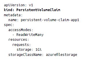 Solicitud de volumen persistente (PVC). La PVC actúa como una capa de abstracción entre el pod y el almacenamiento. En Kubernetes, el pod monta volúmenes con la ayuda de las PVC y estas se comunican con los recursos subyacentes. Cabe destacar que una PVC permite consumir el recurso de almacenamiento subyacente abstraído; es decir, permite solicitar un almacenamiento aprovisionado previamente. La PVC define el tamaño y el tipo del disco, y, a continuación, monta el almacenamiento real en el pod; este proceso de enlace puede ser estático, como en un volumen persistente (PV), o dinámico, como en una clase de almacenamiento. Por ejemplo, en el siguiente manifiesto solicitamos una PersistentVolumeClaim con un almacenamiento de 1 Gi: