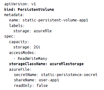 Volumen persistente: estático. Un administrador de clústeres, normalmente el equipo de SRE o DevOps, puede crear un número predefinido de volúmenes persistentes manualmente, que los usuarios del clúster pueden utilizar según lo requieran. El volumen persistente es el método de aprovisionamiento estático. Por ejemplo, en el siguiente manifiesto creamos un PersistentVolume con una capacidad de almacenamiento de 2 Gi: