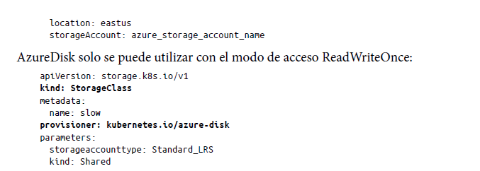 En Azure, dos tipos de aprovisionadores determinan el tipo de almacenamiento que se utilizará: AzureFile y AzureDisk.