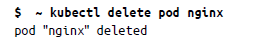 Por último, para eliminar un pod, se utiliza kubectl delete pod de la manera siguiente: