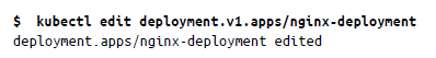 Ejecutamos directamente un comando deployment mediante kubectl edit, pero el enfoque preferido es siempre actualizar el archivo de manifiesto real y luego aplicar kubectl. Esto también ayuda a mantener los manifiestos de implementación en el control de versiones. También se puede usar el comando –record o set para actualizar.