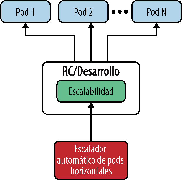 Otra característica de los pods es que permiten el escalado horizontal mediante la replicación implementada a través de ReplicaSets. Esto significa que, si quieres que tu aplicación escale en horizontal, debes crear más pods mediante ReplicaSets.