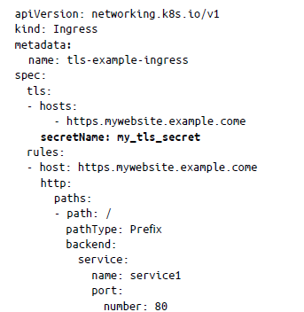 Por último, puedes especificar la compatibilidad con TLS creando un objeto Secret y utilizando después ese secreto en tus especificaciones de entrada de la siguiente manera: