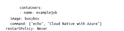 A veces tenemos que ejecutar un script pequeño hasta que termine correctamente. Kubernetes le permite hacerlo con el objeto Job. El objeto Job crea y administra pods que se ejecutarán hasta completarse correctamente y, a diferencia de los pods normales, una vez completada la tarea dada, estos pods creados por Job no se reinician. Puedes utilizar un archivo YAML de Job para describir un objeto Job sencillo de la siguiente manera: