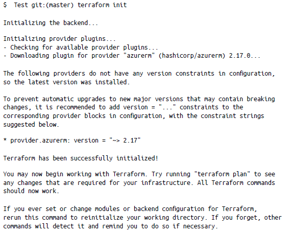 Ejecuta terraform init para inicializar Terraform y descargar el proveedor de AzureRM: