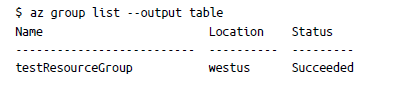 También deberías verlo desde la CLI. Ten en cuenta que la operación del shell no es específica de la región. Puedes ver recursos en varias ubicaciones. Utiliza el siguiente comando para mostrar el grupo de recursos: