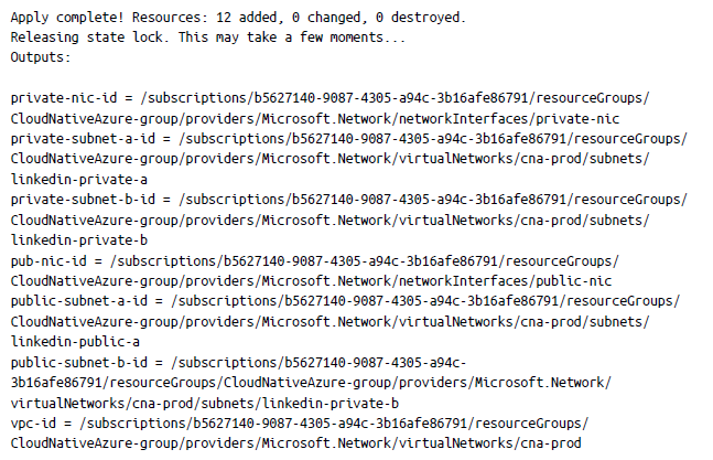 El resultado final de apply de Terraform tiene el siguiente aspecto: