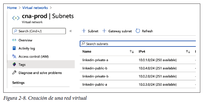 - Crea cuatro subredes diferentes dentro de la red virtual.