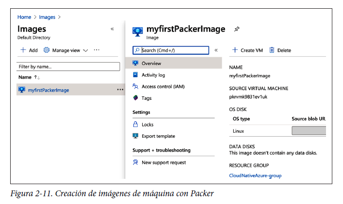 En la figura 2-11 se muestra la imagen que hemos creado en Azure Portal. Puedes comprobar que la imagen tenga el servidor web Nginx y el equilibrador de carga y el servidor proxy HAProxy preconfigurados iniciando máquinas virtuales que usen la imagen.