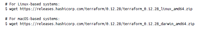 Para instalar Terraform en tu equipo,3 primero debes encontrar el paquete binario correspondiente a tu sistema operativo. Si utilizas Azure Cloud Shell, se empleará la última versión de Terraform de forma predeterminada. En el momento de escribir este libro, la versión actual de Terraform es 0.12.28. Para encontrar el paquete binario adecuado: